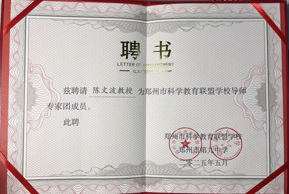 活动中,陈文波副院长系统介绍了河南理工大学的百年办学历史、医学院学科建设成果、药学与基础医学等专业特色,重点解读了“新医科”背景下人才培养模式创新及新高考改革相关招生政策。他表示,希望以此次共建为契机,推动双方在生源基地建设、科学教育资源共享、教师教研合作、学生生涯规划指导等领域深化合作,共同探索高中与高校协同育人新路径。期间郑州第九中学正式聘任陈文波副院长为“郑州市科学教育联盟学校导师”。陈文波表示,未来将积极参与中学科学教育活动,助力青少年医学素养提升。