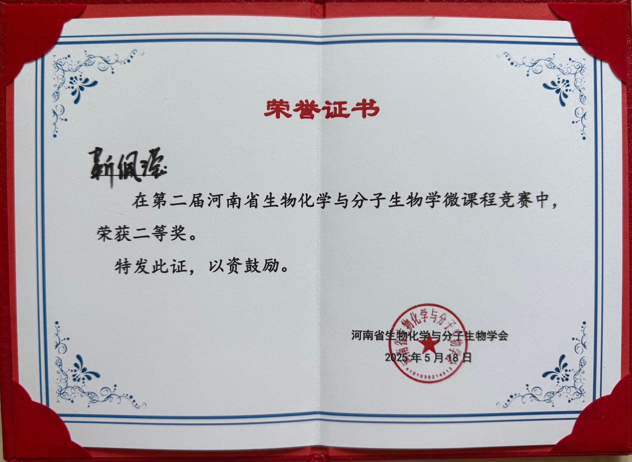 喜报:我院老师靳佩滢在河南省第二届生物化学与分子生物学微课程公开赛中获奖