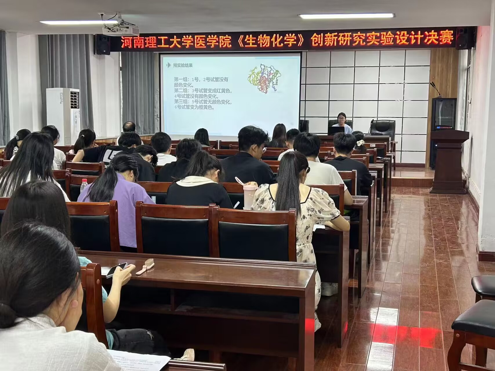 近日,为激发医学生的创新思维,提升生物化学实验技能,培养具有创新能力和实践精神的高素质医学人才,河南德赢VWIN成功举办了临床医学专业首届生物化学创新研究实验设计比赛。此次比赛由基础医学部主办,吸引了众多临床医学专业的优秀学子积极参与,特别是那些对生物化学实验充满热情、具有创新潜力的学生。经过初赛的激烈角逐,共有35位同学进入决赛阶段。决赛为现场答辩,参赛学生需围绕生物化学领域的热点问题或前沿技术,设计具有创新性、科学性和可行性的实验方案。