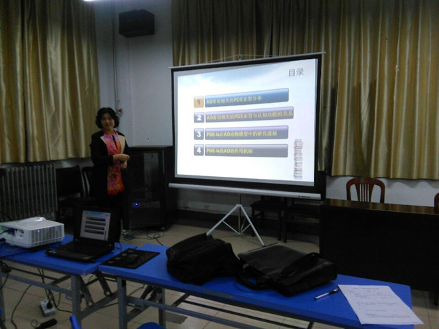 在讨论会中,曹老师介绍了“AD密切相关的PDE亚型分布”、“AD密切相关的PDE亚型与认知功能的关系”、“PDE-Is在AD动物模型中的研究进展”、“