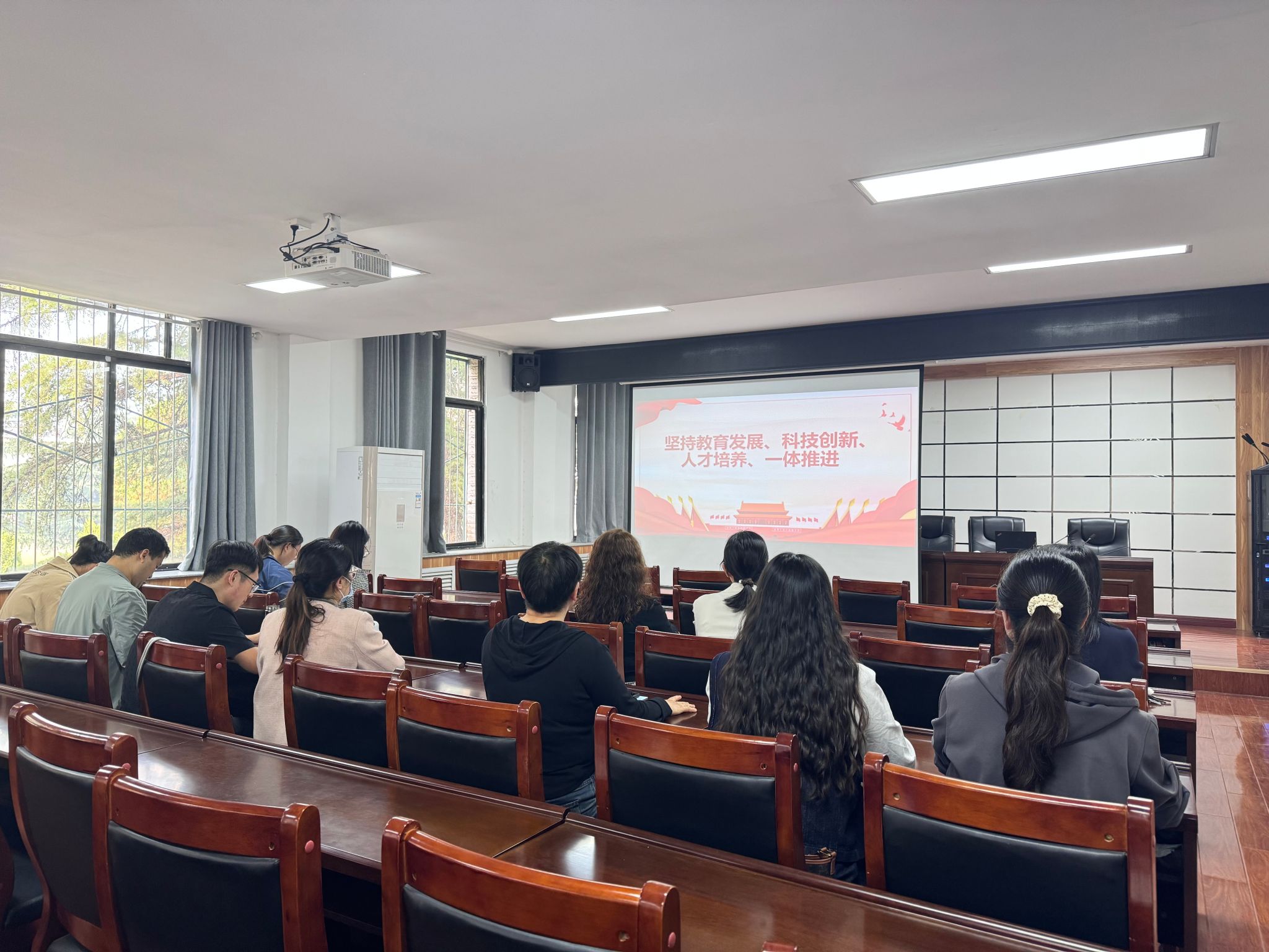 为了全面、深刻地学习贯彻党的二十届三中全会精神,特别是关于教育、科技、人才“三位一体”发展的战略部署,10月8日下午,第二教工党支部在317会议室召开了深入细致的专题学习活动。活动围绕《坚持教育科技人才“三位一体”,奋力谱写中国式现代化宏伟篇章》和《统筹推进教育科技人才一体化发展,有力支撑中国式现代化建设》两大核心议题,展开了富有深度的研讨。