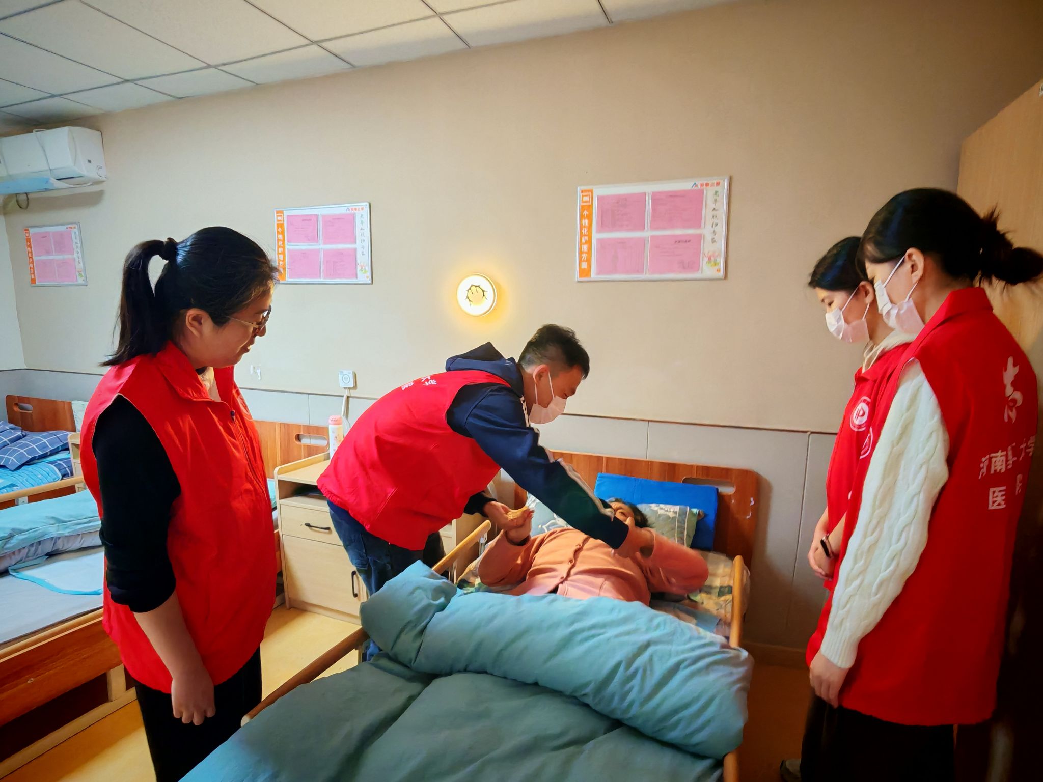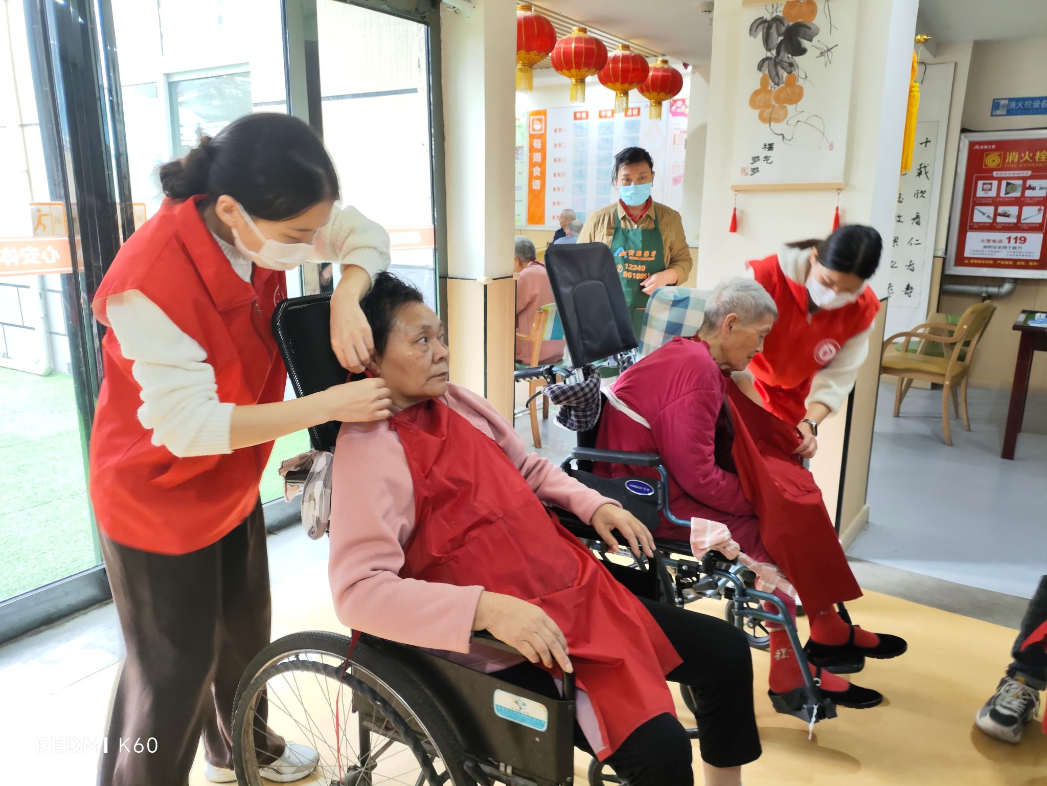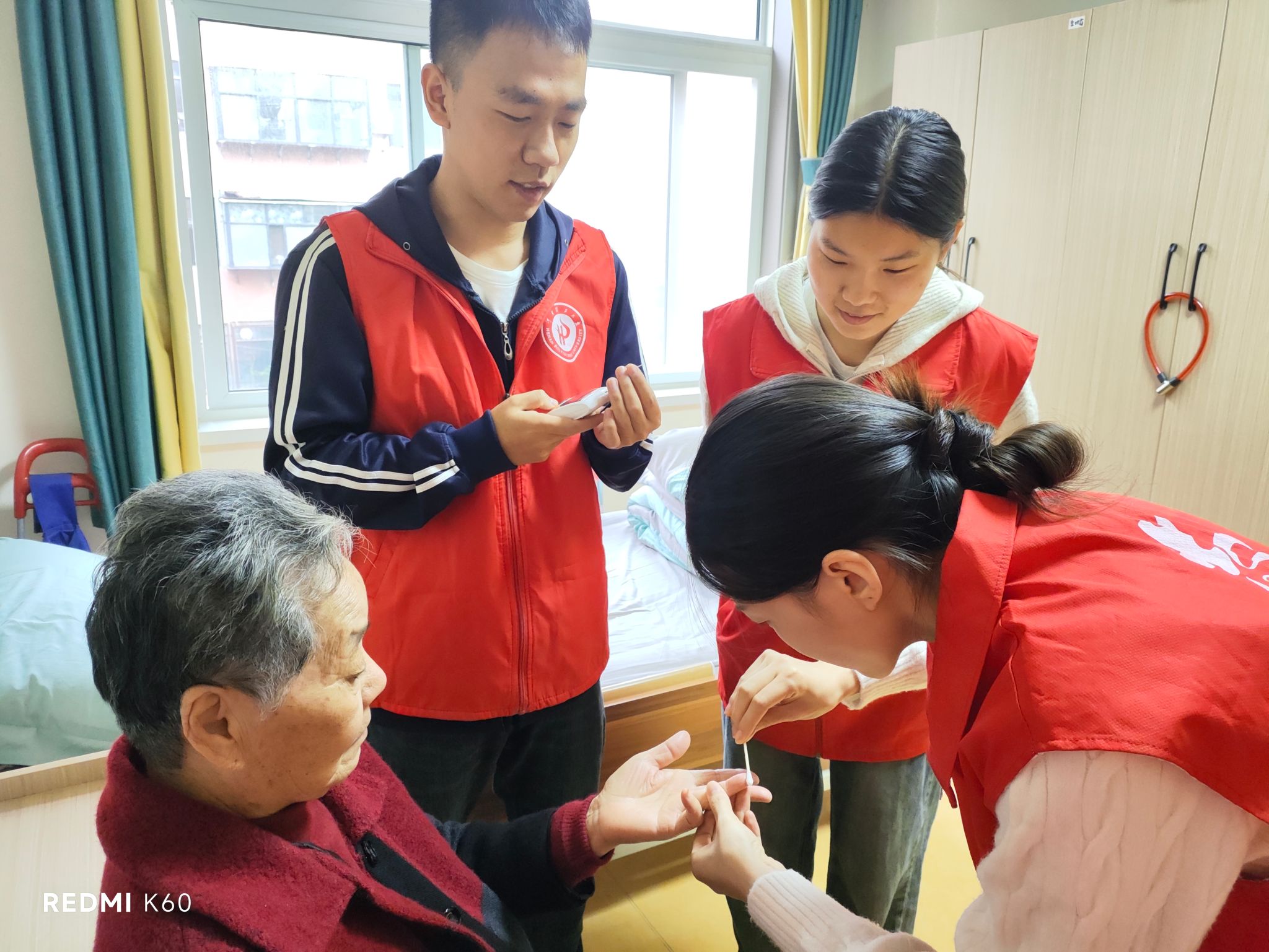 活动当天,志愿者满怀热情,早早地来到养老服务中心。在简短的任务分工后,大家迅速投入到各自的岗位中。志愿者与老人们进行亲切交流,他们耐心倾听老人们讲述过去的故事,关切地询问他们的身体状况和生活情况。志愿者利用自己的专业知识,为老人们提供了健康检查服务。他们拿着血压计和血糖仪,为老人们检查血压血糖状况,并告知相关的注意事项。这一举动有助于预防高血压、高血糖等常见疾病的发现与预防,受到了老人们的热烈欢迎和高度评价。其间为老年人喂药、喂饭、轮椅转运,这些看似微不足道的帮助,老人的热泪却顺着眼角不停地往下流。