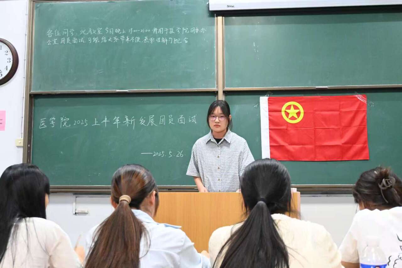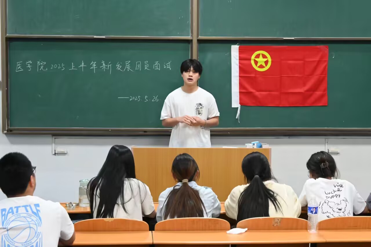 5月26日中午,医学院2025年上半年新发展团员面试工作在一号教学楼1202教室顺利进行。本次面试旨在选拔出政治素养高、综合能力强的优秀学生加入中国共青团,为团组织注入新鲜血液。