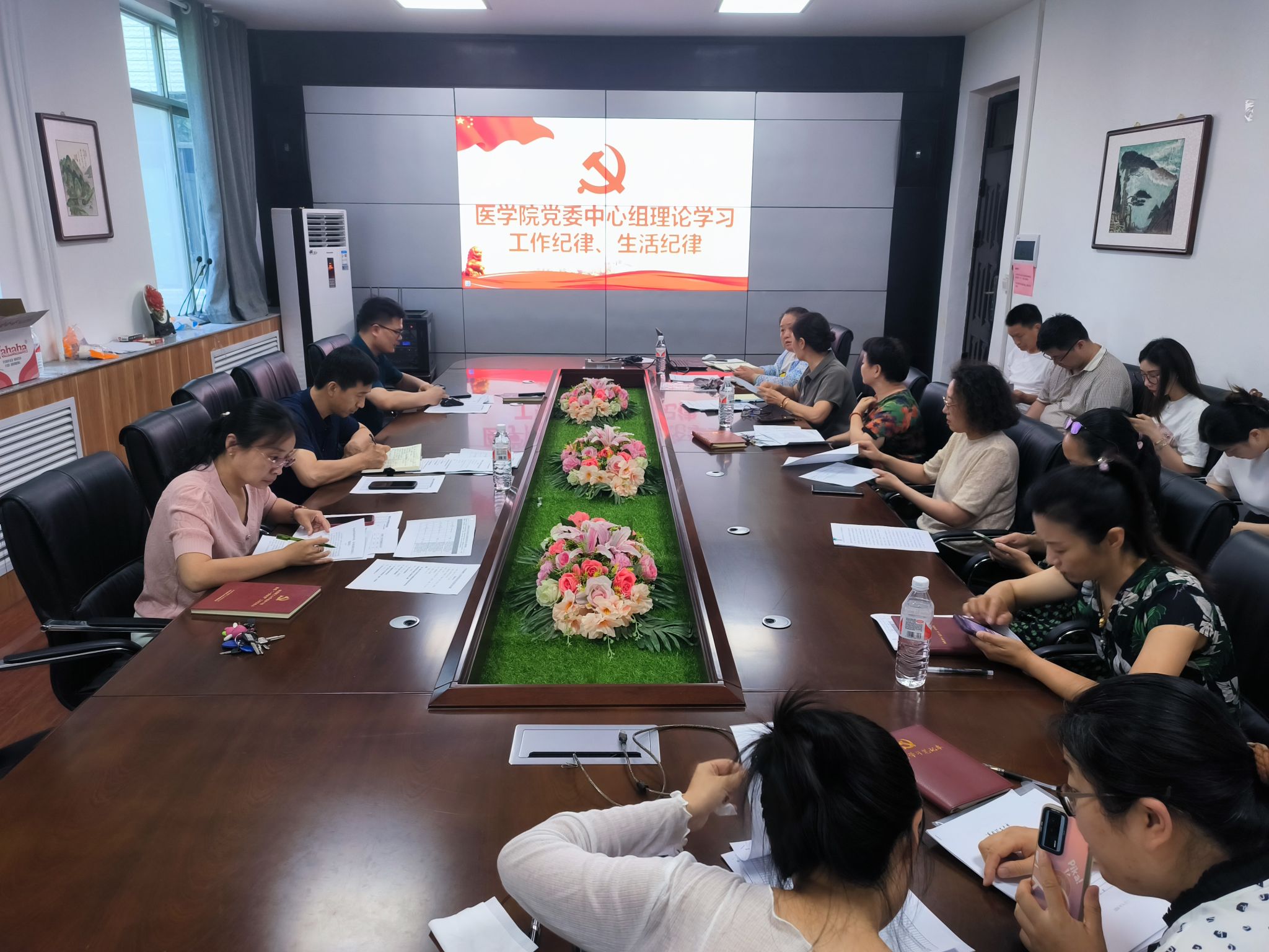 为进一步加强党员干部的纪律教育,提升党性修养,医学院党委中心组于6月14日组织扩大学习,各党支部书记;各科室、系部、实验中心主任;专、兼职辅导员参加,围绕“工作纪律和生活纪律”两项内容,开展了《中国共产党纪律处分条例》的深入学习教育活动。