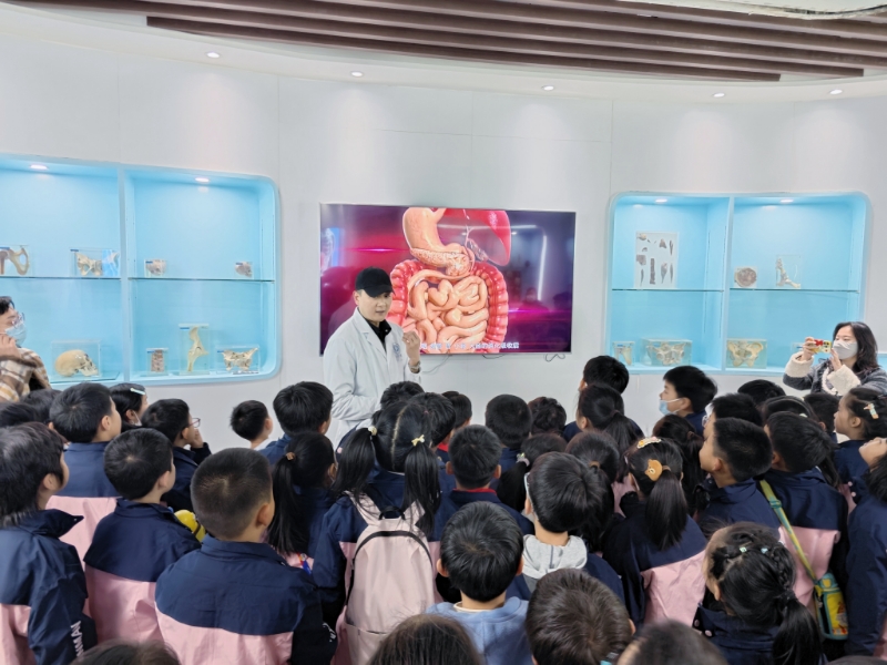 在生命科学馆内,学生们首先参观了“生命之源”展区,这里展示了生命的起源和演化过程,让学生们对生命的起源有了更深刻的认识。随后,他们来到了“生命之本”展区,这里陈列了大量的人体解剖学和组织胚胎学标本,通过专业讲解员的详细解说,学生们对人体结构和生理功能有了更加直观的了解。